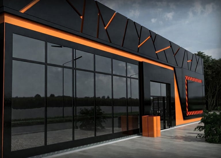 Fachadas modernas e comunicação visual que destacam sua marca com design e durabilidade.